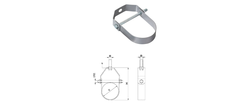 CLEVIS HANGER consists of a yoke and a support strap made from shaped carbon steel strip and a joining bolt. Pipe will not pinch when installing. Engineered design aligns bolt holes for quicker overhead installation.
