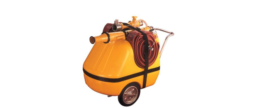 Foam concentrate storage tank is made out of fiber glass. The foam branch pipe and fire hoses are mounted on the concentrate storage tank. The foam inductor is clamped rigidly on the storage tank. The complete unit is mounted on two wheels with a handle for easy movement